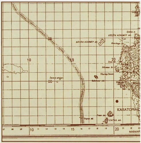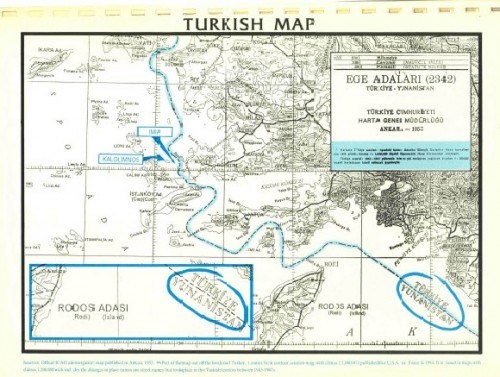 Τουρκικός χάρτης που δείχνει ξεκάθαρα πως τα Ίμια ανήκουν στην Ελλάδα.
