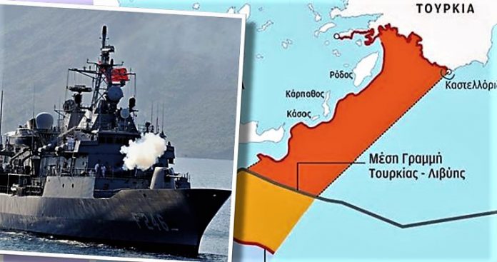 Υπογράμμισε, μάλιστα, ότι η Τουρκία θα βρίσκεται στην περιοχή πολιτικά και στρατιωτικά. Άρα δεν πρόκειται μόνο για τα πιθανολογούμενα κοιτάσματα υδρογονανθράκων. Πρόκειται για τη “Γαλάζια Πατρίδα”, για την ευρύτερη στρατηγική ιδιοποίησης του θαλάσσιου χώρου που αποτελεί τον κορμό της Ανατολικής Μεσογείου. Είναι αξιοσημείωτη η αναφορά του Ερντογάν ότι θα προστατεύσει τα δικαιώματα της Λιβύης.