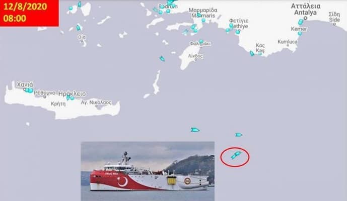 Το Oruc Reis, σαρώνει την περιοχή που έχει δεσμευτεί από τους Τούρκους με NAVTEX. Έχει αυξήσει ελαφρά την ταχύτητα σε 5,3 κόμβους (μέγιστη ταχύτητα 4,5 κόμβοι για διενέργεια ερευνών), συνεπώς μάλλον δεν κάνει έρευνες. Αλλά το Oruc Reis δεν μας “επισκέφθηκε” για να κάνει έρευνες και δεν είναι και τόσο ειλικρινής η στάση της Αθήνας που έχει οχυρωθεί πίσω από το έωλο επιχείρημα που λέει “εντάξει ,είναι σε περιοχή ελληνικής υφαλοκρηπίδας, αλλά δεν κάνει έρευνες”!