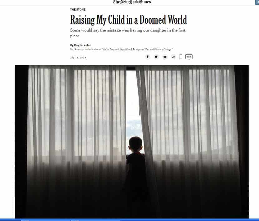 Ο τίτλος λέει: "Λιγότερα παιδιά για να σωθεί ο πλανήτης;"