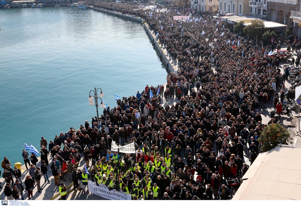 Μεγάλη συγκέντρωση διαμαρτυρίας των κατοίκων της Λέσβου πραγματοποιήθηκε σήμερα στη Μυτιλήνη για τις επιπτώσεις από το προσφυγικό και μεταναστευτικό ζήτημα.