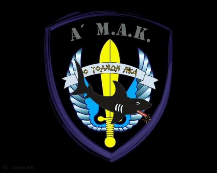 Τέλος, ανεπίσημα, από την ημέρα ίδρυσης της Α’ ΜΑΚ το 1974 το έμβλημα της μονάδας είναι μία παραλλαγή του εμβλήματος των Δυνάμεων Καταδρομών. Λόγω της αμφίβιας ιδιότητας της μοίρας προστέθηκε στο έμβλημα των Δυνάμεων Καταδρομών ένας λευκόφαιος καρχαρίας που κρατά στο στόμα του ένα αναμμένο δυναμίτη.
