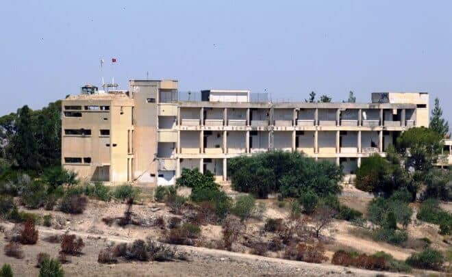 Στην αμέσως παραπάνω φωτογραφία ντοκουμέντο, Τούρκος στρατιώτης, υψώνει την τουρκική σημαία στην πύλη του στρατοπέδου της ΕΛΔΥΚ, το απόγευμα της 16ης Αυγούστου 1974, λίγο μετά την κατάληψή του. Αμέσως από κάτω φαίνεται πως είναι το ίδιο σημίο 45 χρόνια μετά.