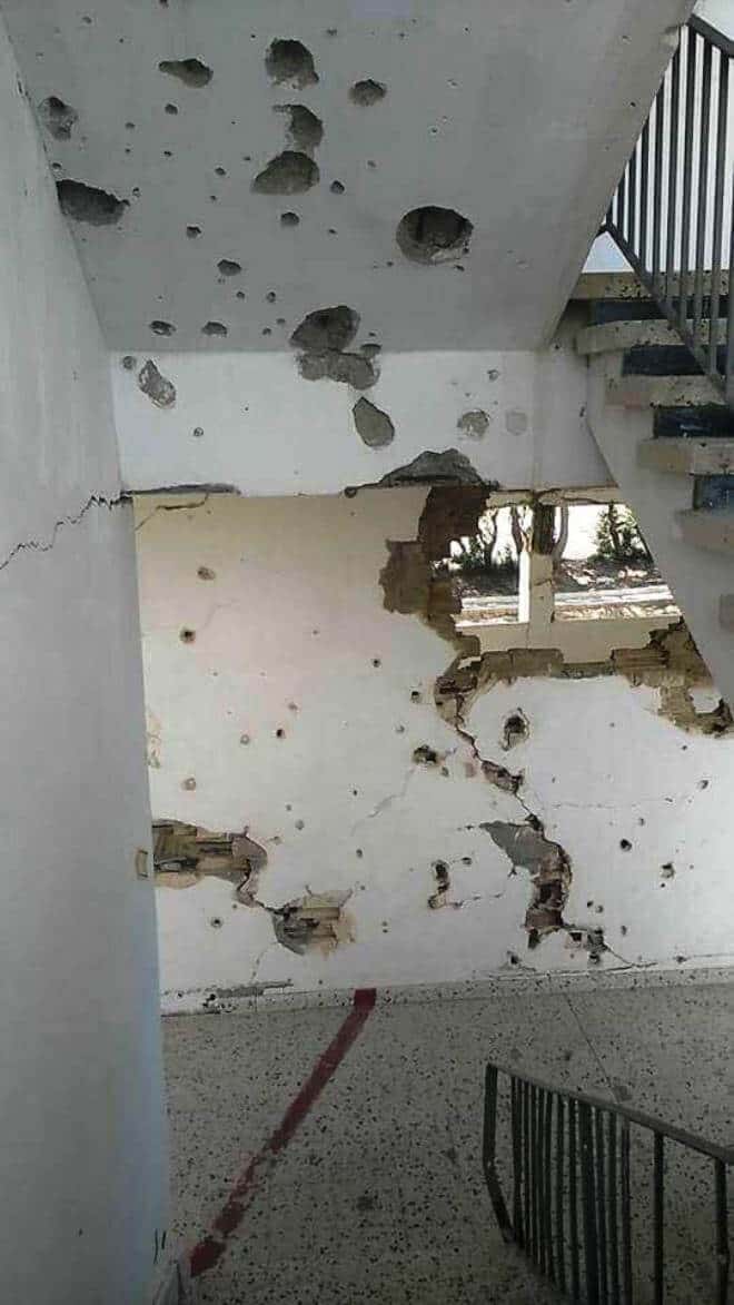 Μάλιστα, υπάρχουν φωτογραφίες από τουρκικές πηγές - όπως οι δύο παραπάνω - από το εσωτερικό της Σχολής ή Grammar School, όπου αποτυπώνεται η σφοδρότητα των βομβαρδισμών και των πληγμάτων που δέχθηκε το κτιριακό συγκρότημα, στο οποίο βρισκόταν μέχρι την τελευταία στιγμή ελληνικές δυνάμεις, πριν εγκαταλείψουν οριστικά το σημείο.