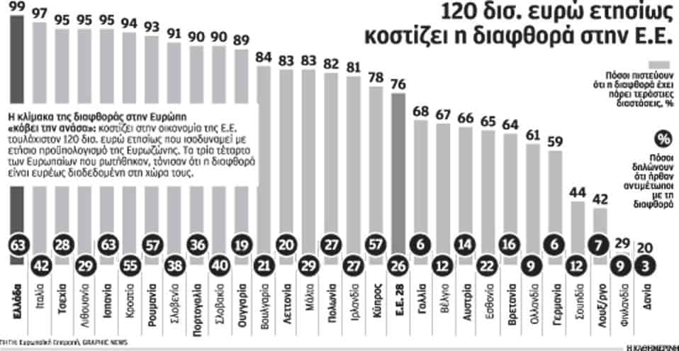 «Πρωταθλήτρια» της Ευρωπαϊκής Ενωσης στη διαφθορά η Ελλάδα