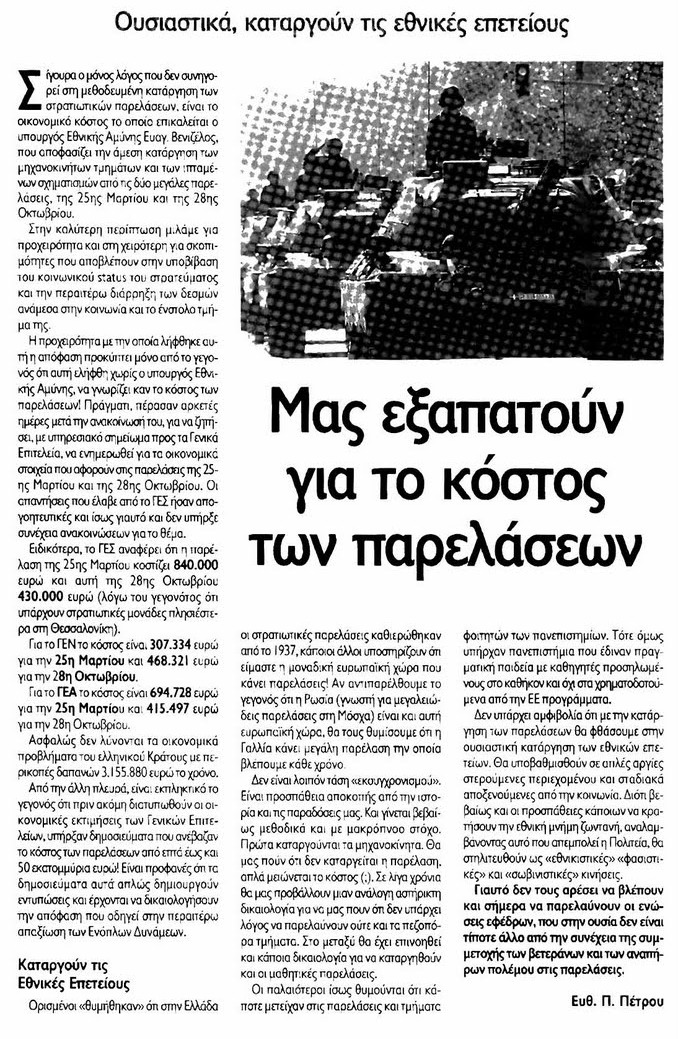Είδα το παιδί στο αναπηρικό καρότσι να ορθώνεται. Είδα το φάσκελο του έφηβου στους κομισάριους. Είδα τους νέους ν’ αποστρέφουν το...