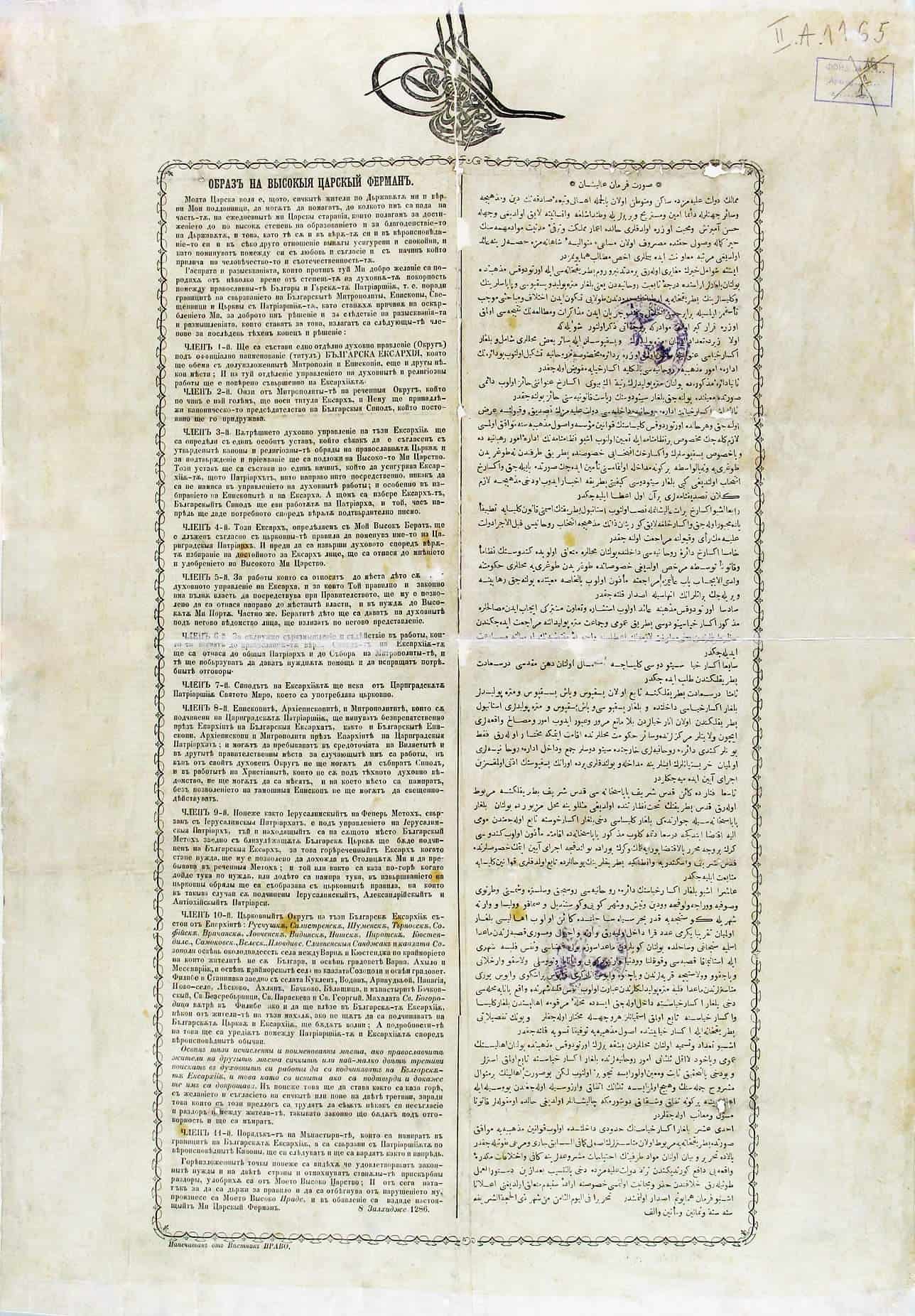 Εικόνα 1: Το φιρμάνι σύστασης της Βουλγαρικής Εξαρχίας.