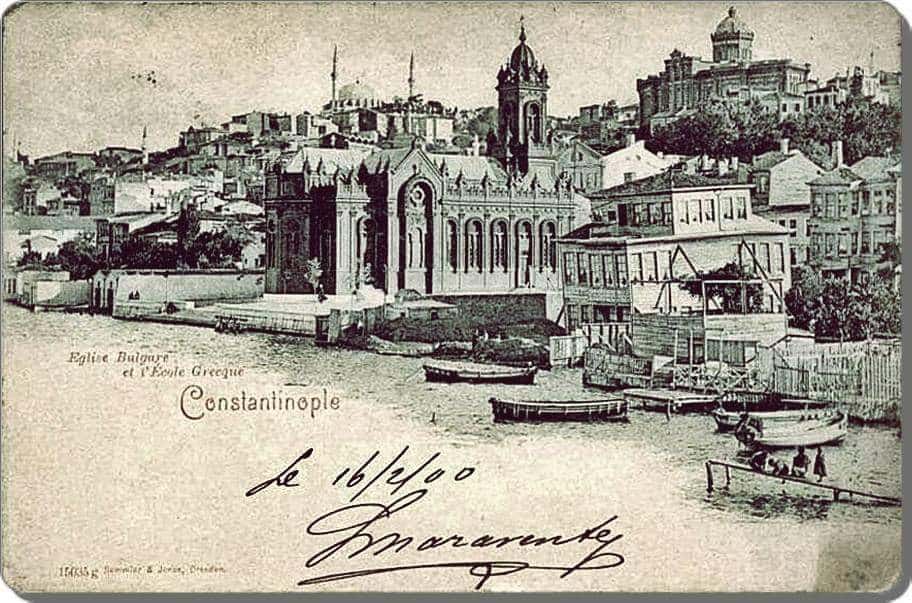 Εικόνα 2: Η αρχική ξύλινη βουλγαρική εκκλησία του Αγίου Στεφάνου στον κεράτιο κόλπο στο Φανάρι (ο ναός της βουλγαρικής Εξαρχίας στην Κωνσταντινούπολη).