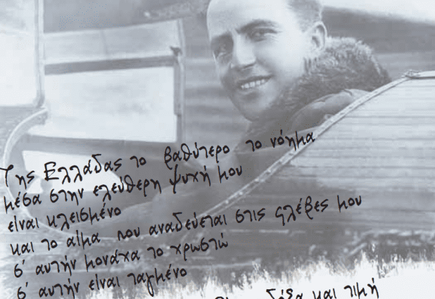 Ἦταν σὰ νὰ βγῆκαν ἀπὸ τὰ σπλάχνα τῆς γῆς. Πετάχθηκαν πάνω ξαφνικά, µέτρησαν µἐ ἀετήσιο βλέµµα σὲ πλάτος καὶ µῆκος τὴν γῆ τῶν προγόνων, διέτρεξαν ἀστραπιαία τὴν τρισχιλιόχρονη ἱστορία της καὶ µὲ γιγάντιο δρασκελισµὸ τινάχτηκαν πάνω σ᾽τῆς Πίνδου τὶς κορφές. Ἐκεῖ … στάθηκαν! Ἀντικρὺ στὸν ἥλιο· ντυµένοι τὸ φῶς φρουροὶ στὶς νέες Θερµοπύλες τῆς ἐλευθερίας τοῦ κόσµου, φύλακες τῆς τιµῆς τοῦ ἀνθρώπου. «Μολὼν λαβέ!», κραύγασαν, καὶ οἱ σιδερόφραχτες αὐτοκρατορίες ἀνατρίχιασαν. «Πίσω!», φώναξαν στοὺς τροµοκράτες τοῦ κόσµου. «Πίσω! Μὴν προχωρᾶτε! Τούτη τὴ γῆς τὴν ἔχει σὲ παντοτινή του κατοχὴ ὁ οὐρανός»! Δὲν θὰ περάσετε. ΟΧΙ! Ἡ κραυγὴ «ΑΕΡΑ!» σκόρπισε τρόµο στοὺς ἐχθρούς… Ἔπειτα τὰ πολυβόλα κροτάλισαν φριχτά… Κι ἔπειτα… Ἔπειτα οἱ Ἀετοὶ πῆραν νὰ πετοῦν ἀπὸ ράχη σὲ ράχη κι ἀπὸ κορφὴ σὲ κορφή. Πολέµησαν ἀκατάβλητοι, ὑπέφεραν µαρτύρια φριχτά, ἔτρωγαν χιόνι γιὰ νερό. Καὶ τὸ ψωµί τους λιγοστό, συχνὰ ἀνύπαρκτο… Πότισαν µὲ τὸ αἷµα τους τὴν γῆ…