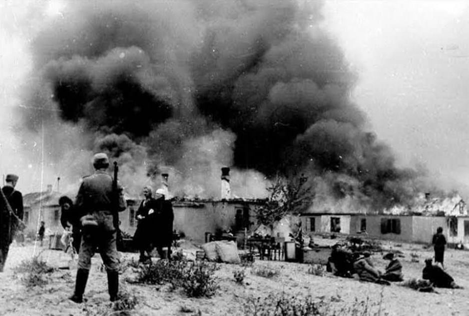 Οι Γερμανοί αφανίζουν τους Πύργους Πτολεμαΐδος. Σκοτώνουν ή καίνε ζωντανούς τριακόσιους σαράντα ανθρώπους, στην πλειονότητά τους γυναικόπαιδα, ακόμα και αβάφτιστα μωρά. [23 Απριλίου 1944] (vimeo channel 03, Εκτύπωση)