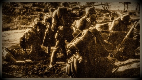 Τα σράπνελ πέφτουν παντού. Οι στρατιώτες πληγώνονται αλλά οι συνάδελφοι τους εξακολουθούν να προχωρούν. Ανεβαίνω σε μια νέα κορυφή απ’ όπου βλέπω καθαρά τις βουλγαρικές θέσεις με τα χαρακώματα τους, αλλά το πυροβολικό τους είναι αθέατο.