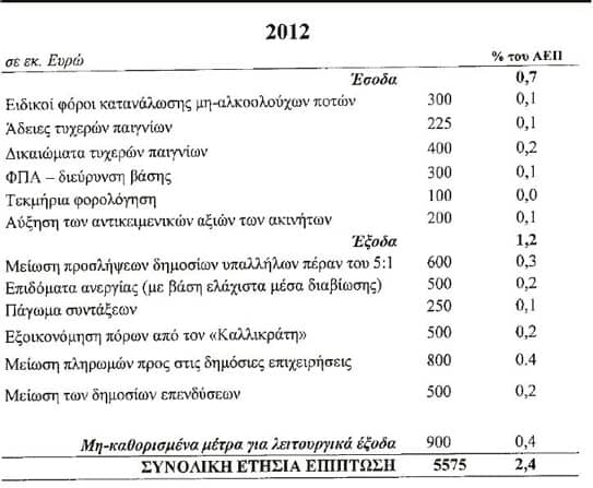 Το 2014, και μόνο τότε θα σταματήσει τη φορολογία των κερδοφόρων επιχειρήσεων, χάνοντας 600 εκατομύρια, αλλά προβλέπει εξοικονόμηση από μη καθορισμένα ακόμα μέτρα 4700 εκατομυρίων!!!