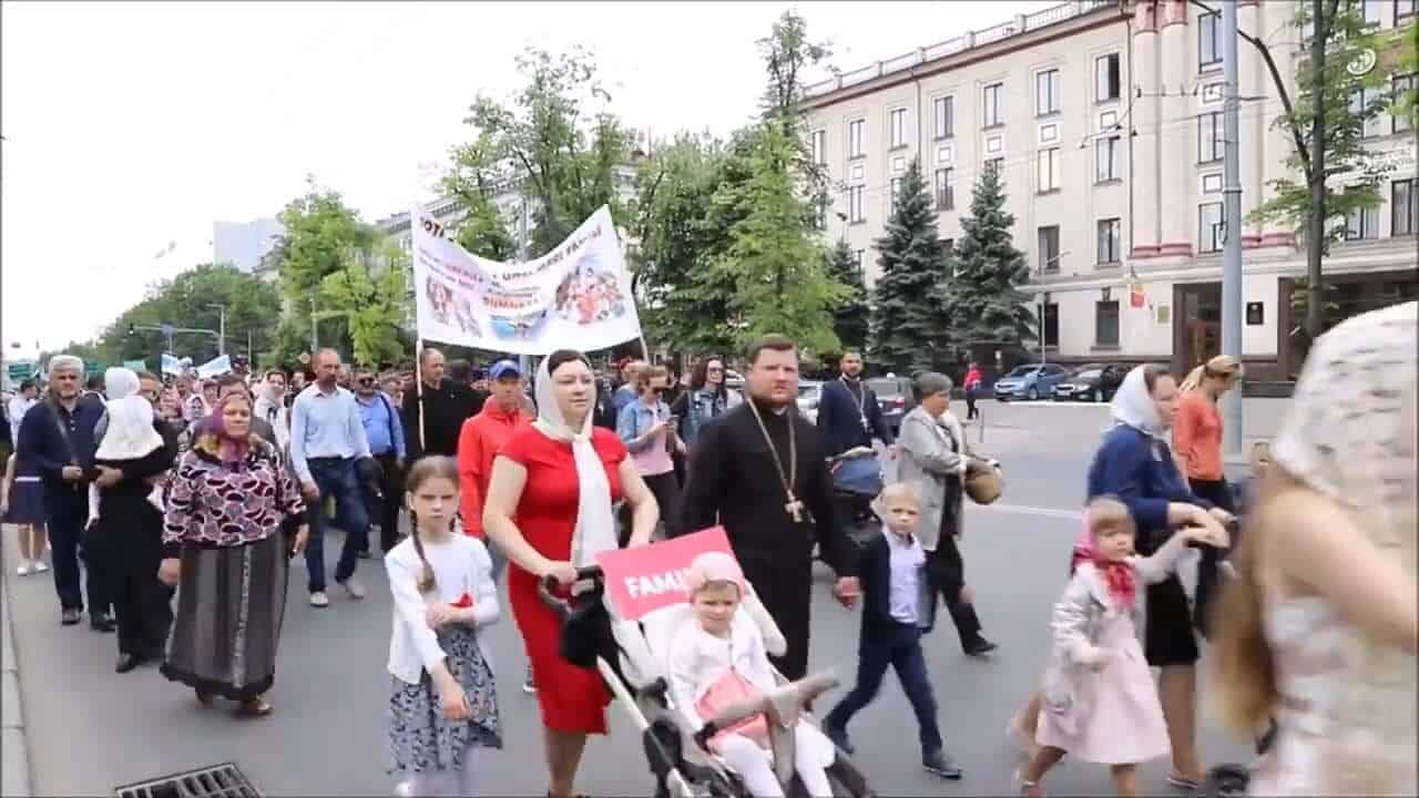 Χιλιάδες ορθόδοξοι πιστοί της Μολδαβίας ξεχύθηκαν τους δρόμους της πρωτεύουσας στις 18 Μαΐου, σε πορεία προς υποστήριξη των παραδοσιακών οικογενειακών αξιών.