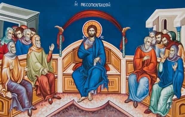 Εἶνε Πεντηκοστή, ἀγαπητοί μου. Οἱ ἅγιοι ἀ­πόστολοι καὶ οἱ ὑπόλοιποι μαθηταὶ τοῦ Κυ­ρίου τὴν ἡμέρα αὐτὴ βρίσκονται συγκεν­τρωμένοι στὸ ὑ­περ­ῷο, ἕνα εὐρύχωρο δωμάτιο – μιὰ μικρὴ αἴ­θουσα, στὸν ἐπάνω ὄροφο ἑ­νὸς σπι­τιοῦ τῶν Ἰεροσολύμων.