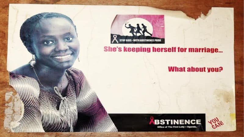 Χαρακτηριστική εἶναι μία προωθητική ἀφίσα τέτοιου προγράμματος πού ἔγινε στήν Οὐγκάντα, ὅπου μέ τό σύνθημα “Stop aids – with abstinence pride”, πού δηλώνει τήν ὑπερηφάνεια γιά τήν ἀποχή ἀπό τίς σεξουαλικές σχέσεις μέχρι τό γάμο ὡς μέθοδο περιορισμοῦ τοῦ aids, εἰκονίζεται μία γυναίκα, μέ τήν ἐπιγραφή ὅτι εἶναι ἕτοιμη γιά γάμο, ρωτώντας τόν παραλήπτη τοῦ μηνύματος ἄν εἶναι καί ὁ ἴδιος ἕτοιμος γι’ αὐτό (“She’s keeping herself for marriage… What about you?”), μέ τήν τελική προτροπή «Μπορεῖς!» (You can!).