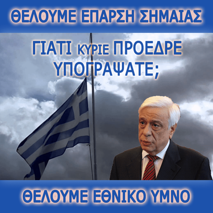 Πότε θα εκδώσετε Προεδρικό Διάταγμα να τιμούν όλο το χρόνο τα σχολεία, όσους έπεσαν για την Ελληνική Σημαία και να μην παραλείπουν να ψάλλουν τον Εθνικό Ύμνο;