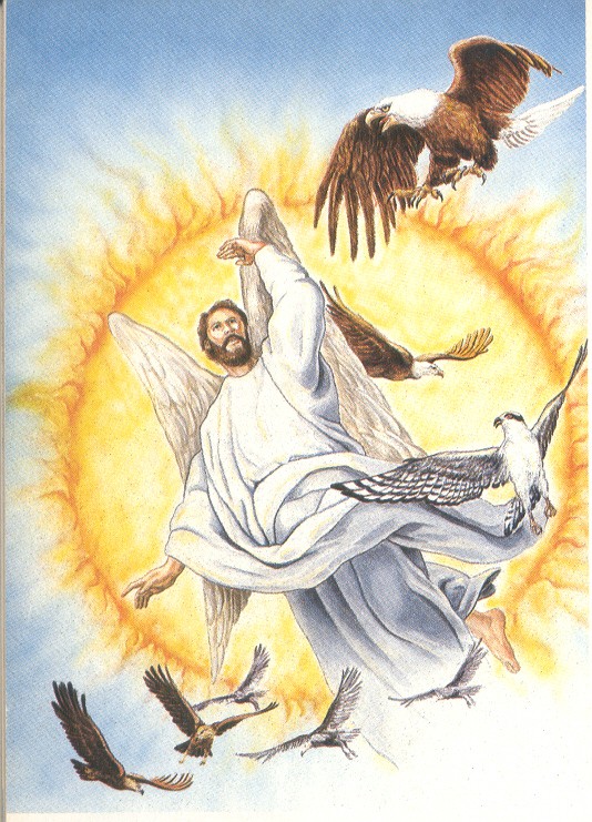 Άγγελος σφάζει όσους δεν είναι Μάρτυρες του Ιεχωβά. Με τέτοιες εικόνες «εκβιάζει» η Οργάνωση των ΜτΙ τους οπαδούς της, για να μην την εγκαταλείψουν. (Από το έντυπο της Οργάνωσης των ΜτΙ «Αποκάλυψη» σελ. 154)