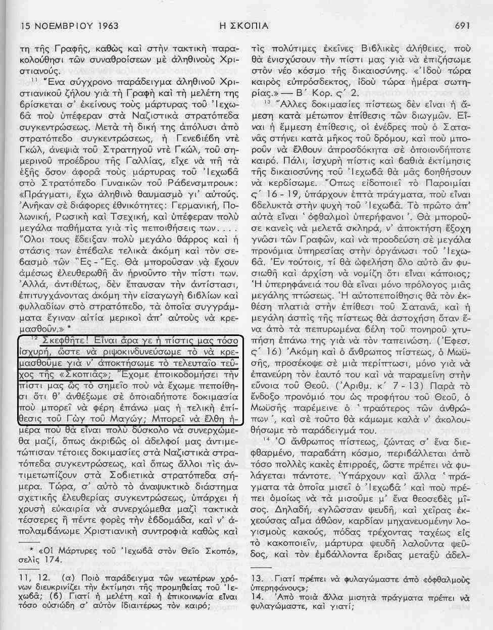 «Σκοπιά» 15 Νοεμβρίου 1963, σελίδα 691: Οι ΜτΙ οφείλουν να κρεμαστούν αν χρειαστεί, για να αποκτήσουν το τελευταίο τεύχος της Σκοπιάς