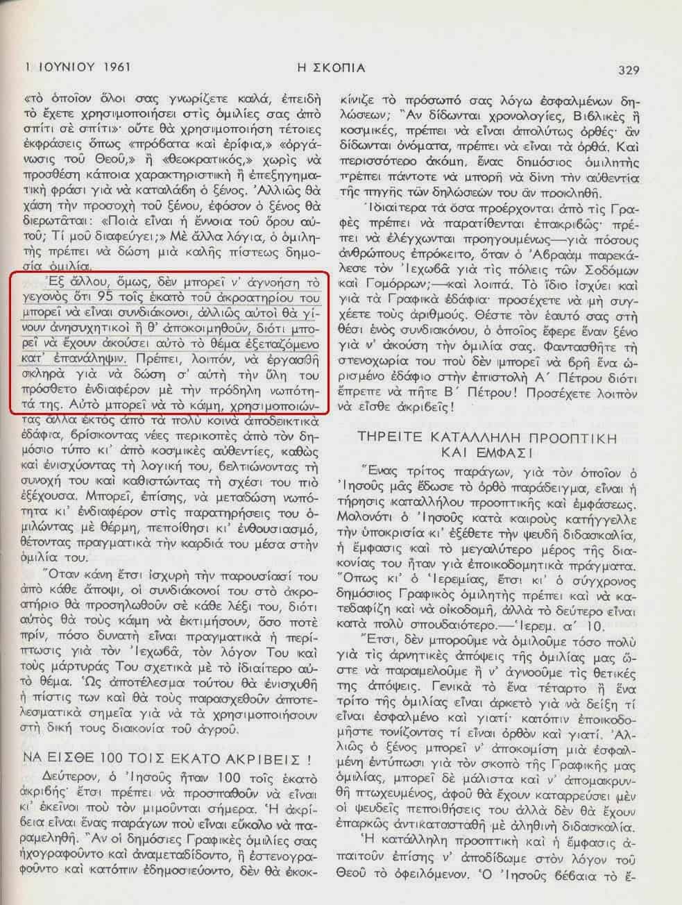 «Σκοπιά» 1 Ιουνίου 1961, σελίδα 329: ΜτΙ κοιμούνται στις συναθροίσεις