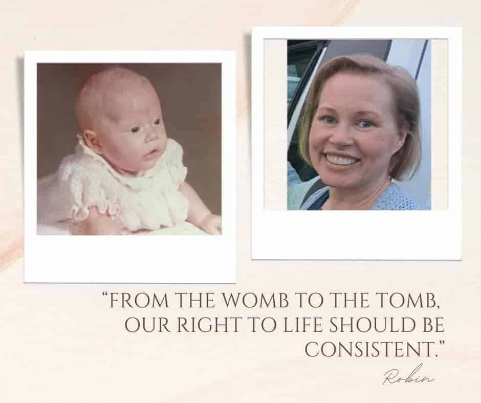Όπως και άλλοι επιζώντες από αμβλώσεις με φυσιολογικό ορό, η Ρόμπιν τραυματίστηκε αλλά δεν σκοτώθηκε. Οι γιατροί προέβλεψαν για αυτήν ότι δεν θα περπατούσε και δεν θα μιλούσε ποτέ…«Τώρα, δηλώνει η ίδια, πραγματικά δεν μπορείς να μου κλείσεις το στόμα, μιλάω όλη την ώρα και λέω την ιστορία μου ως απόδειξη για αυτήν».